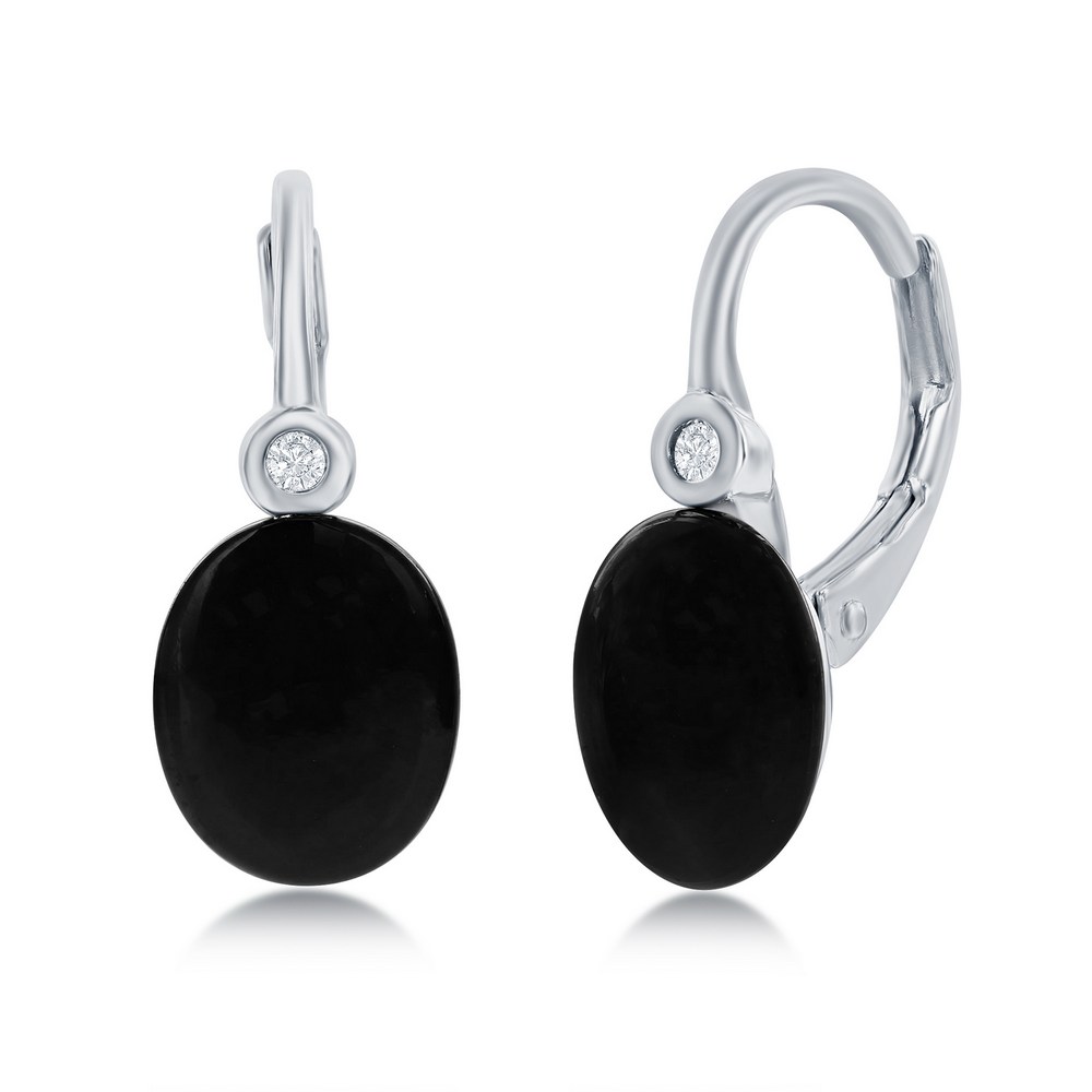 Sterling Silver Oval Onyx & White Topaz Earrings